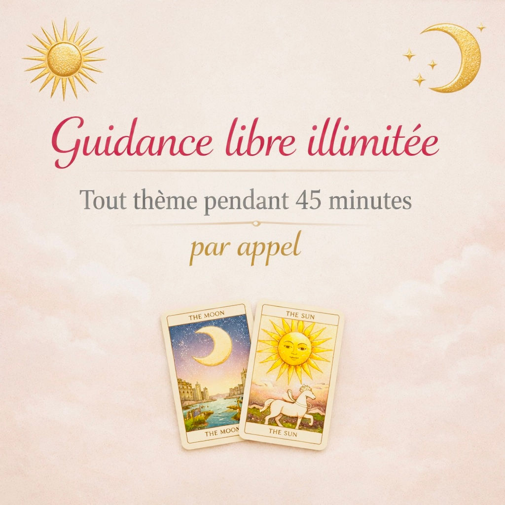 La guidance par téléphone permet un échange direct et approfondi. Elle est particulièrement adaptée lorsque plusieurs thématiques doivent être explorées : vie sentimentale, choix professionnels, blocages personnels ou décisions importantes.